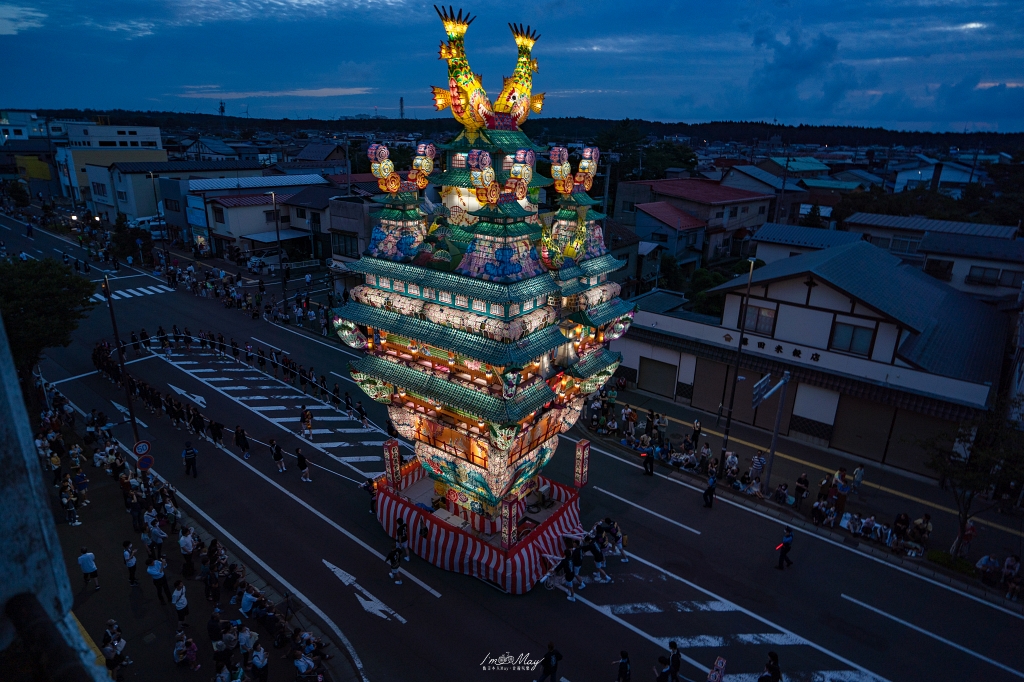 這場活動最大的亮點是兩座日本第一高的燈籠花車——高達 24.1 公尺的「愛季」與 17.6 公尺的「嘉六」,在夜色中緩緩前行,畫面彷彿進入了奇幻世界。